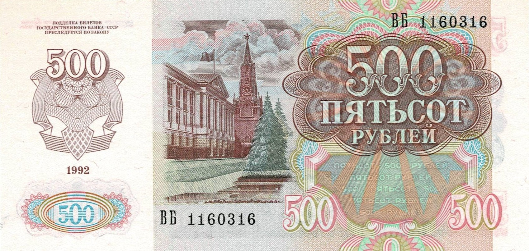 Russia P-249a 500 Rubles 1992