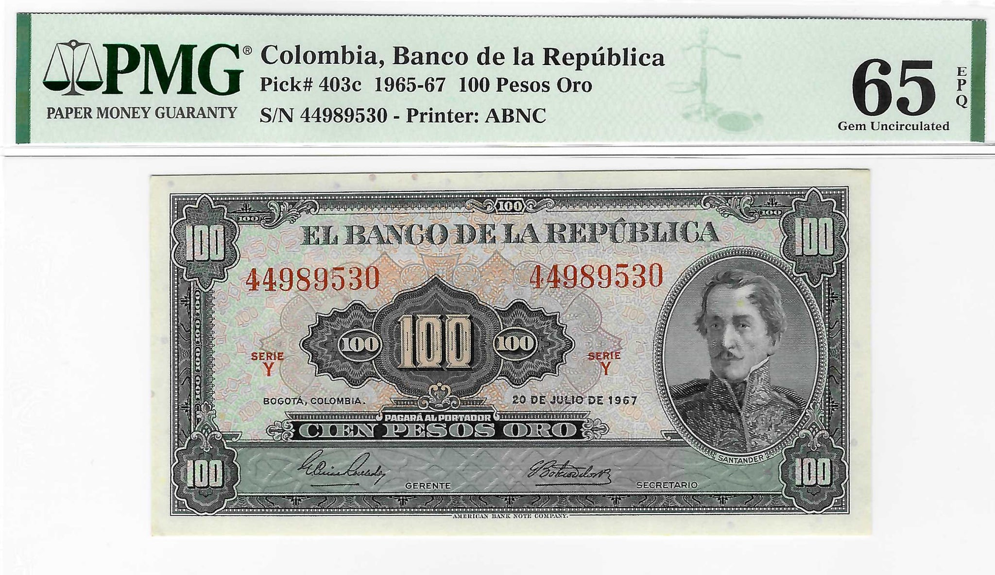 Colombia / P-403c / 100 Pesos Oro / 20.07.1967